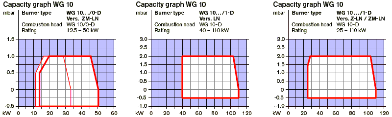 该系列燃烧器的功率范围始于12千瓦,最大可达570千瓦。在不同的型号中,功率调整的方式可分为一级或二级、二级滑动或比例调节。所有型号的燃烧器均符合相应的德国工业标准(DIN)及欧洲标准(EN),且均经样机检测认可。 |