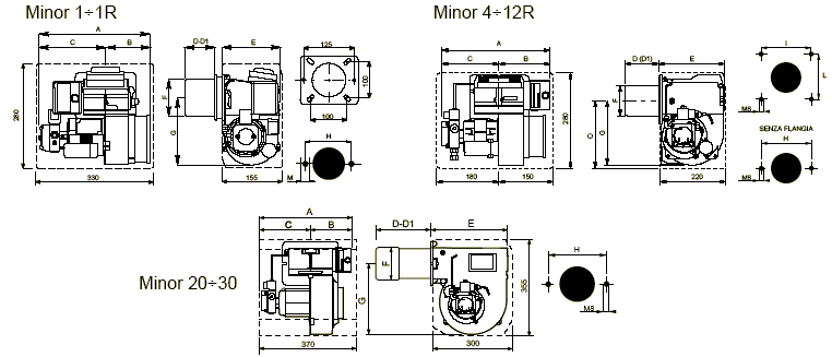 | MINOR系列燃烧器专为燃烧轻油设计,发热量从2万大卡到28万大卡。控制方式为一段火。 |