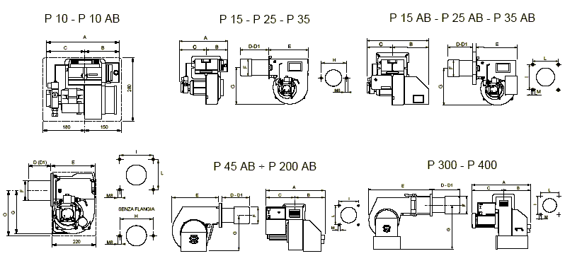 | MAIOR系列燃烧器专为燃烧轻油设计,发热量从5万大卡到350万大卡。有一段火和二段火和三段火三种控制方式。 |