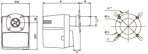 型号 A(mm) B(mm) C(mm) D(mm) a(mm) b(mm) c d(°)