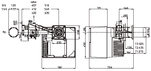 燃烧器出力 kW 335 680 335 750 335 750 530 720 530 1040 530 1040